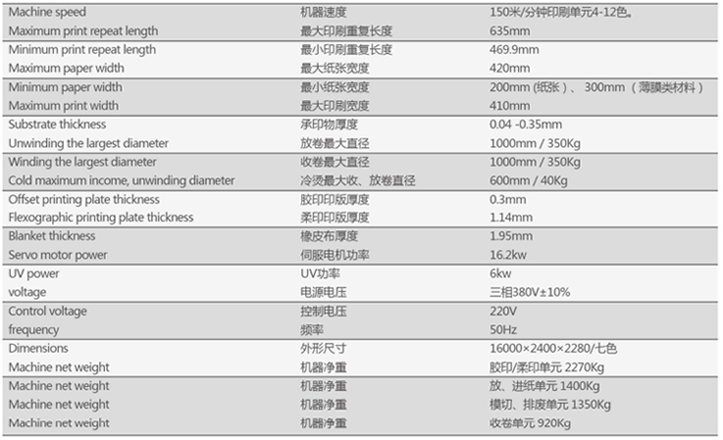 超大印刷面積410x635,******印刷周長可達635,最高速度可達150米/分。無論是長單,還是大標簽,都可解決。承印介質(zhì)廣,紙類、膜類、金屬箔均可印刷,承印物厚度范圍大,0.04MM(薄膜)~0.35mm(卡紙)。